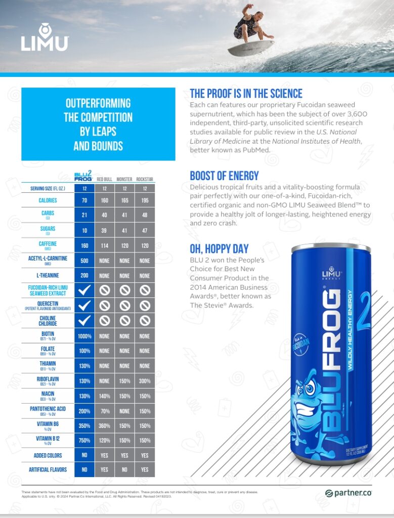 Meet BLU FROG and BLU 2—healthy and nutritious energy drinks with no crash! They’re delicious and packed with natural caffeine, powerful nootropic supplements, vitamins, minerals and tropical fruits.